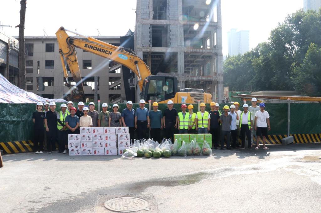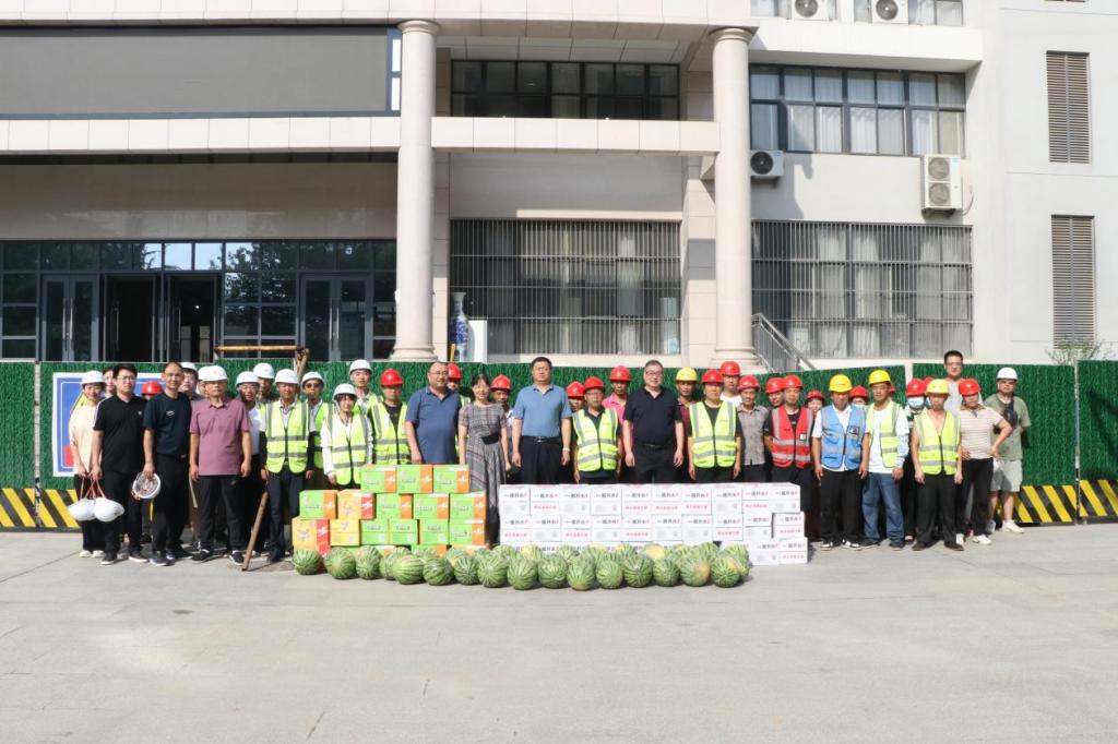 8月1日上午,学校党委书记张志华、校长程书强亲临一线,为奋战在施工改造、后勤保障、校园安保、招生宣传、大赛备战、办公值守等岗位的建设者和师生员工送来了防暑降温品。在施工现场,校领导向广大建设者表示慰问和感谢,叮嘱大家要做好防暑降温、劳逸结合、注意身体,同时要按照施工规范和建设标准,精心组织、统筹谋划、全力以赴,保质保量保安全,高效顺畅推进两个项目进展,按时完成好施工任务,实现建设目标。
