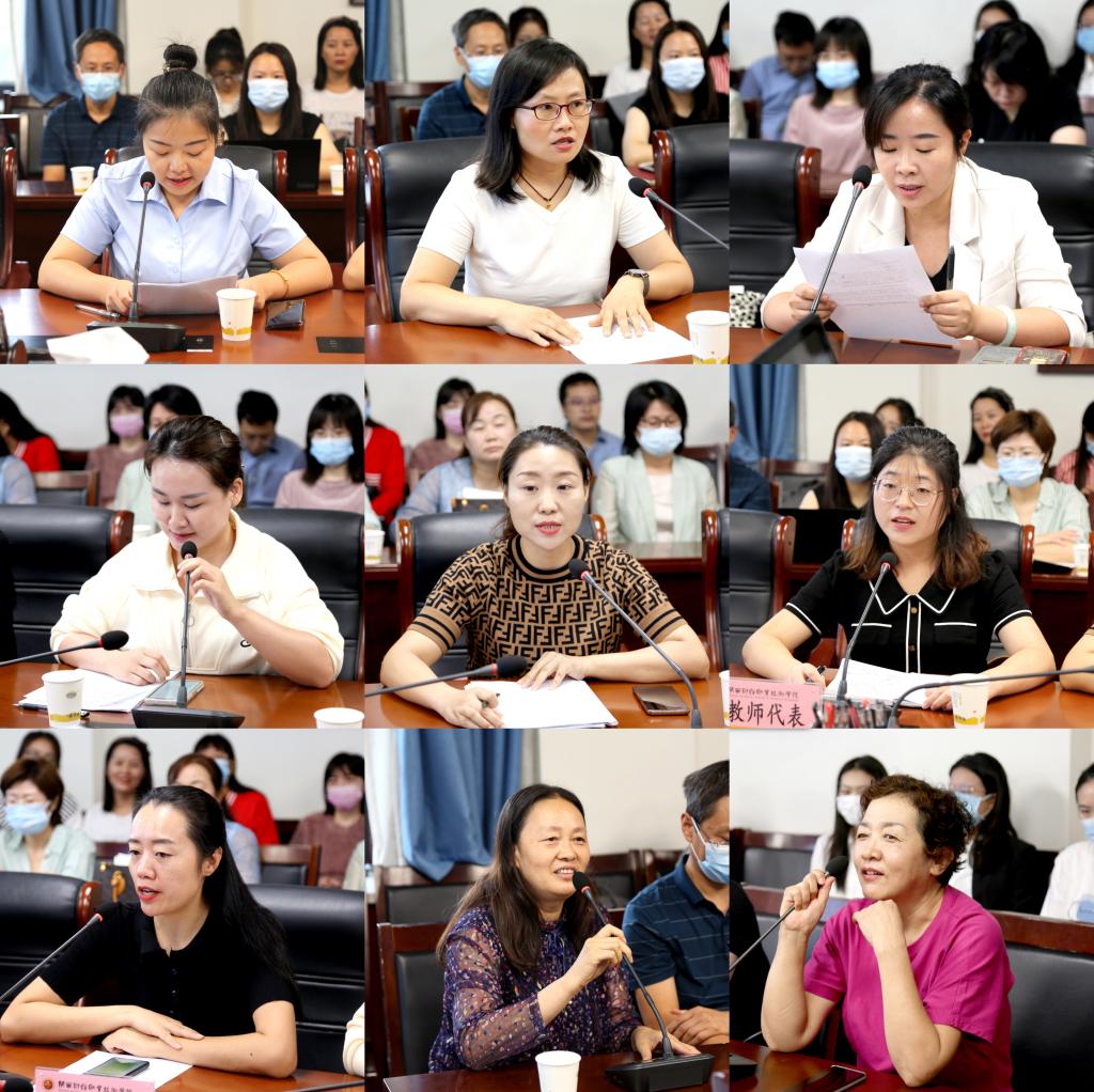 与会代表围绕主题,共话学校改革发展新变化,充分肯定了学校在近年来取得的成绩。大家一致认为,学校在领导班子的正确领导下,学校教育教学成效显著,招生就业成果喜人,校园环境不断改善,国际化办学持续深化,学校声誉显著提高,学校整体发展呈现良好态势。老师们结合自身工作实践,畅谈工作所见、所思、所悟、所得,充分展现了我校广大教师爱岗敬业、无私奉献的职业情操和敢于创新、不断进取的精神风貌。
