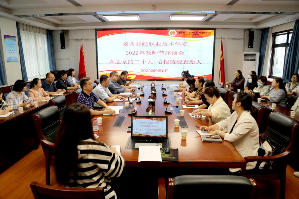 9月8日下午,在全国第38个教师节到来之际,我校以“喜迎党的二十大,培根铸魂育新人”为主题,召开2022年教师节座谈会,会议在办公楼四楼会议室召开。党委书记张志华、院长程书强、党委副书记朱华斌出席会议,副院长雷旭主持。各二级学校教师代表及学校党口、行政、后勤教辅代表共计40余人参加了会议。