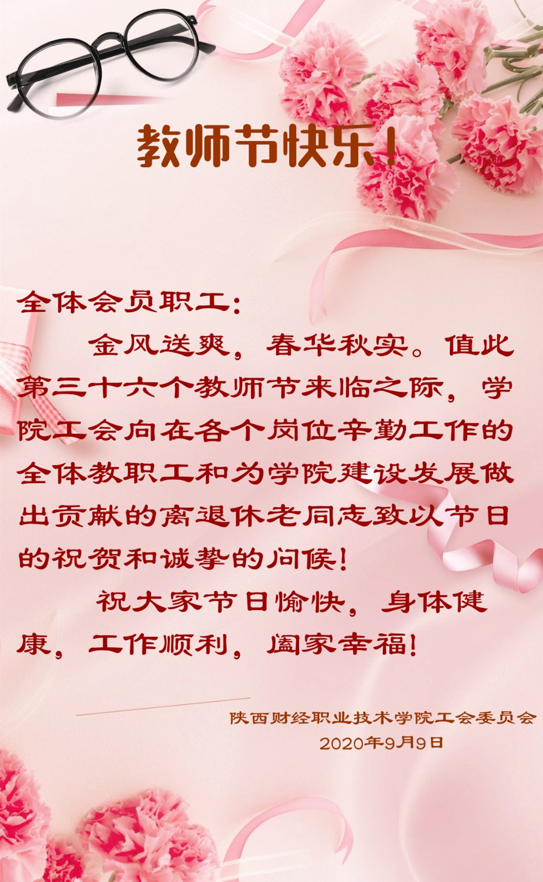 工会主席王爱军、副主席马西牛陪同慰问。工会祝全体教师节日快乐,身体健康、工作顺利。
