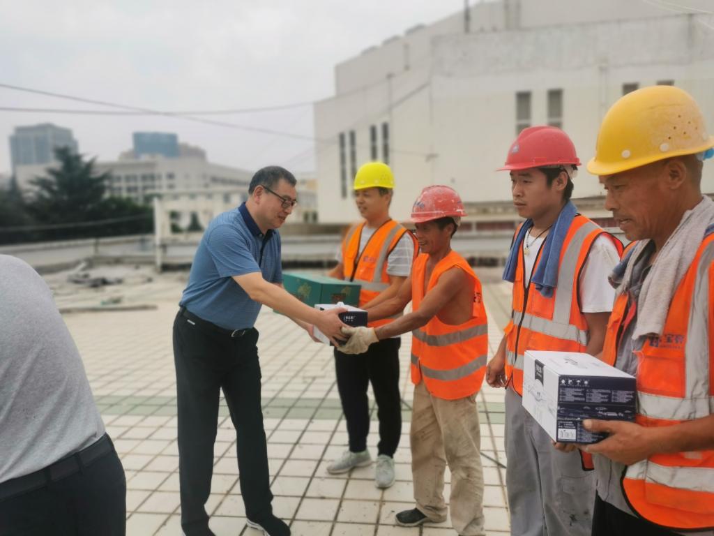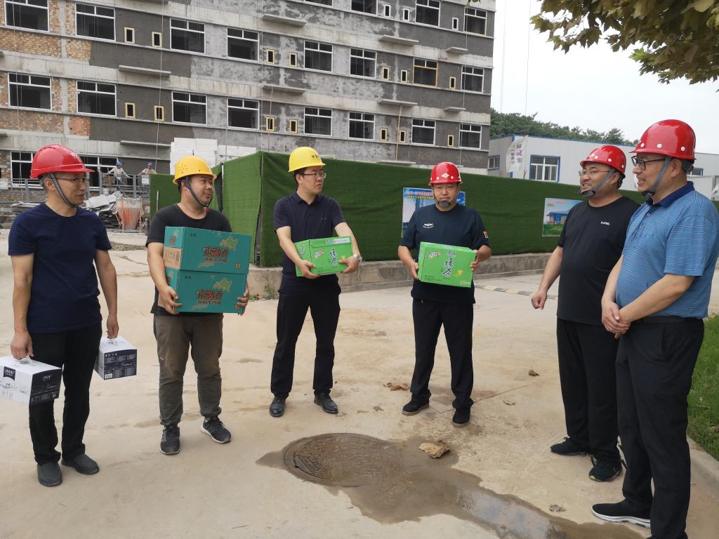 8月11日,院长程书强、副院长雷旭赴一线看望慰问暑期施工及值班人员,送去了防暑降温饮品等物资,代表全院向假期奋战在公寓楼建设、后勤维护维修、校园安保值守岗位的一线人员表示感谢和慰问。
