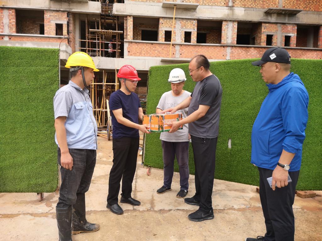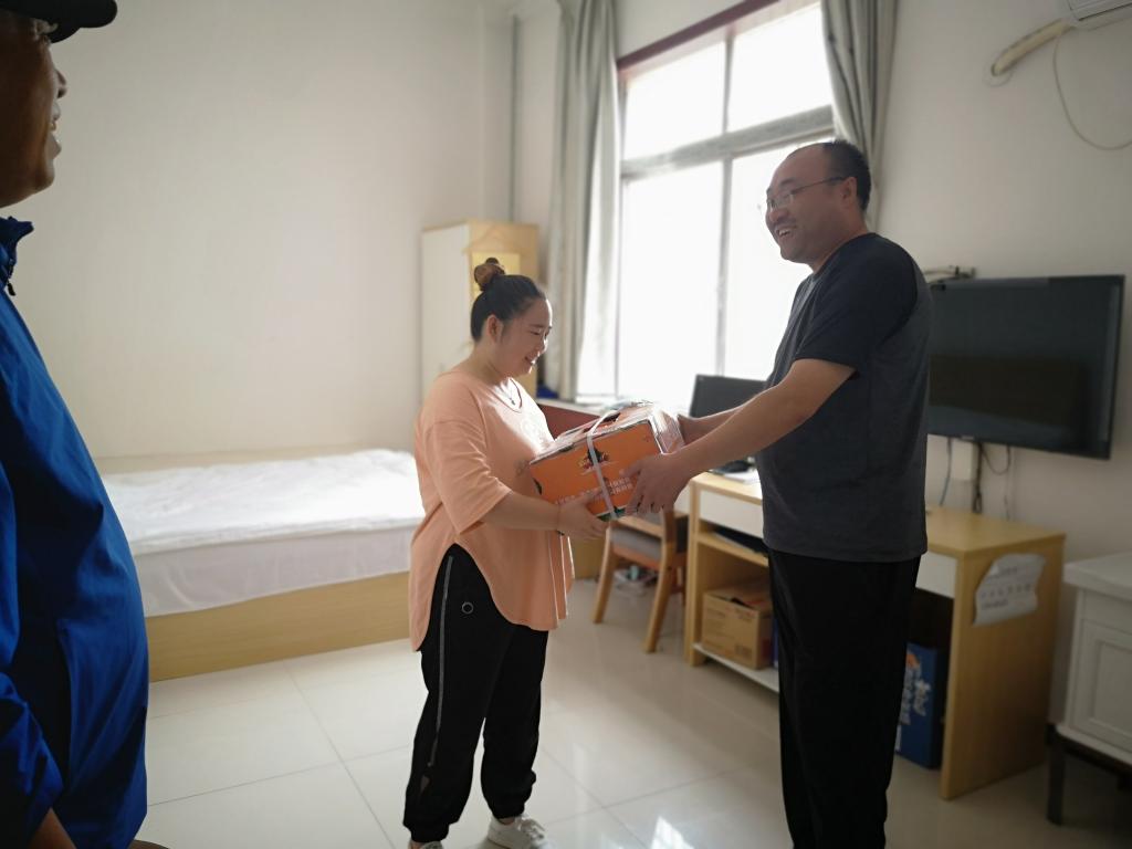 7月12日,学院工会主席王爱军,工会委员、总务处副处长王勇将哈密瓜分送到门卫值班、环卫保洁、疫情防控医护以及学生公寓楼施工等岗位人员手中,转达了贺兴文大师的诚挚慰问和良好祝愿。